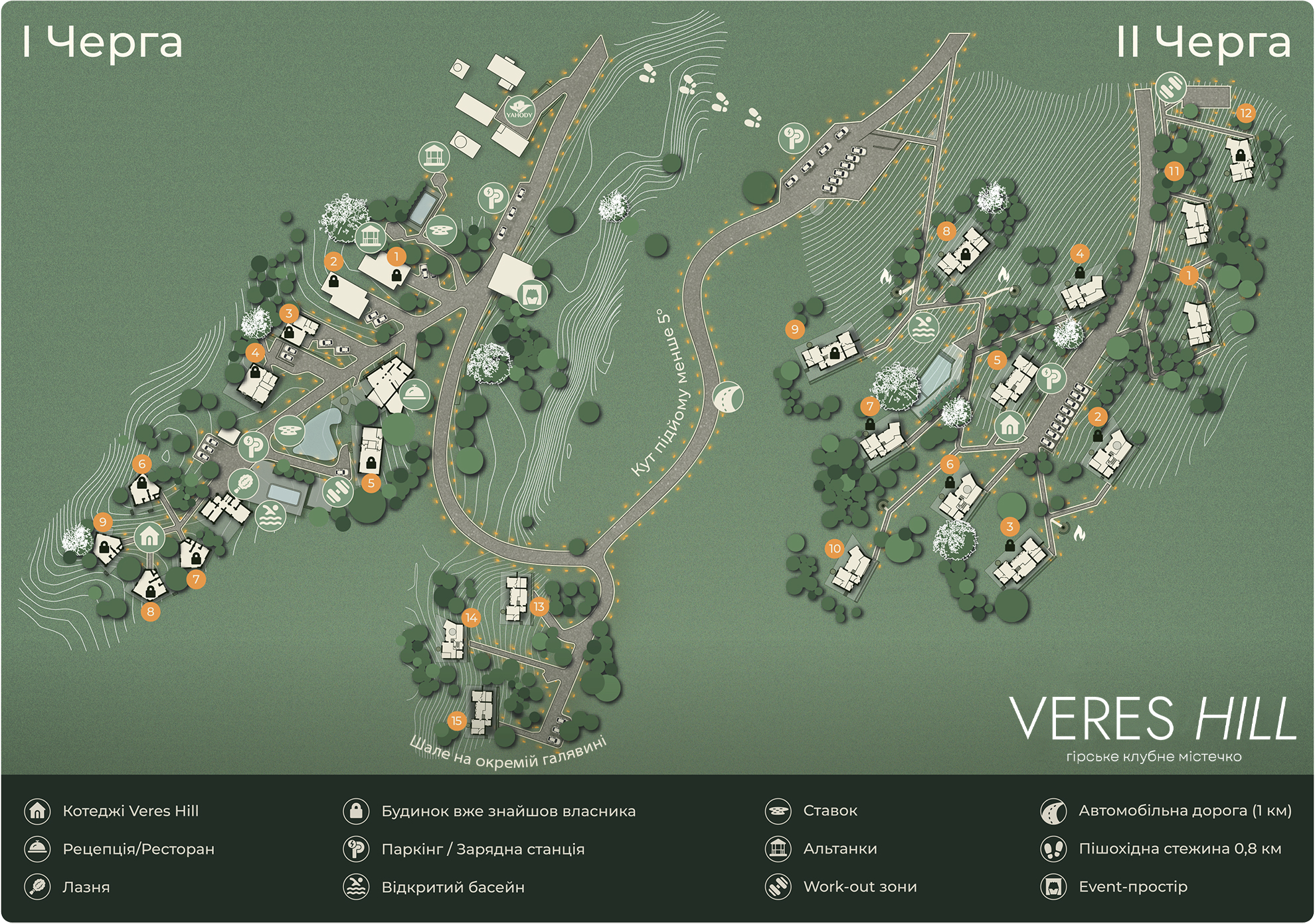 II черга Veres Hill — це гірське клубне містечко з усього 15 котеджів, спроєктоване для тих, хто цінує приватність, спокій і якість простору.